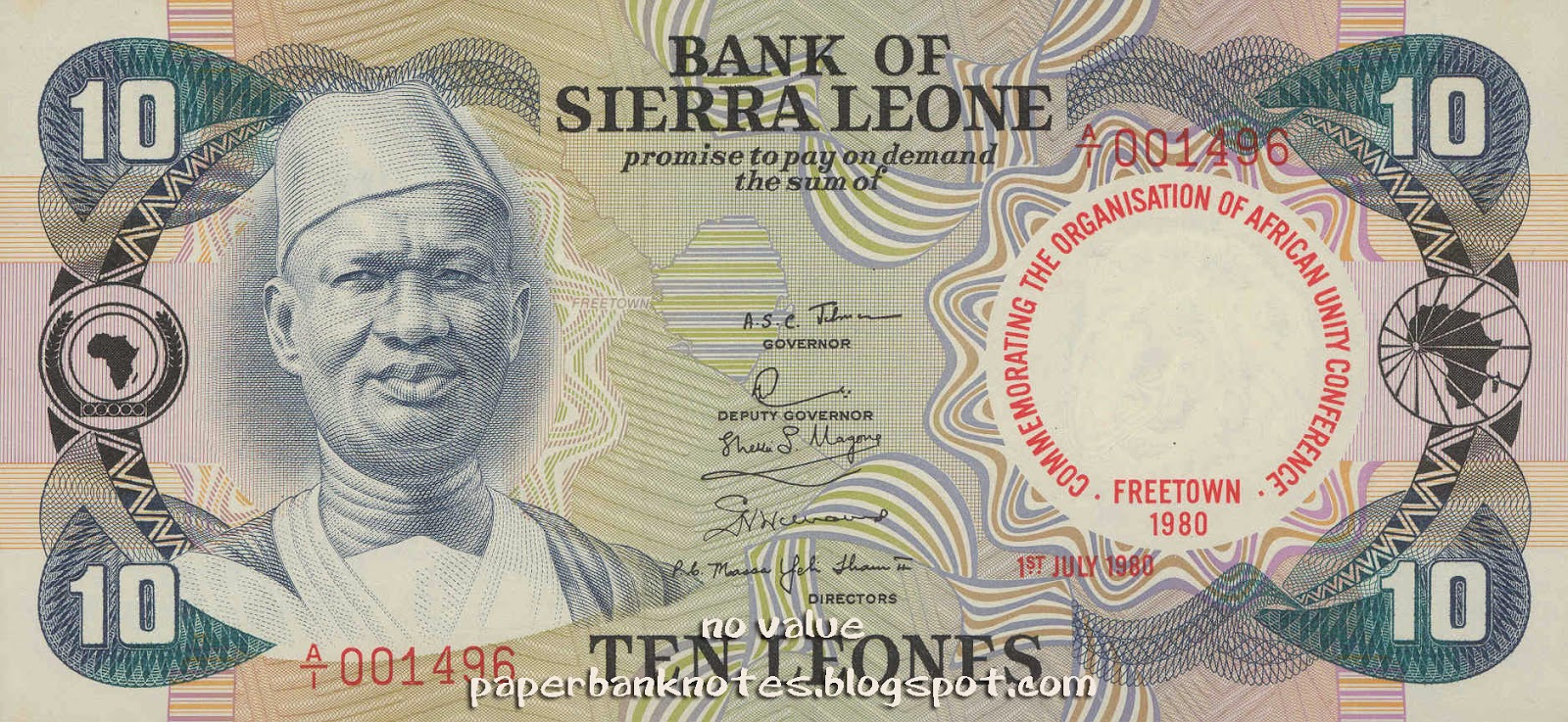 The designs on the front of the notes all depict the portrait of Siaka Probyn Stevens who was the Prime Minister/President of Sierra Leone between 1967 to 1985. He died in 1988, three years after leaving office.